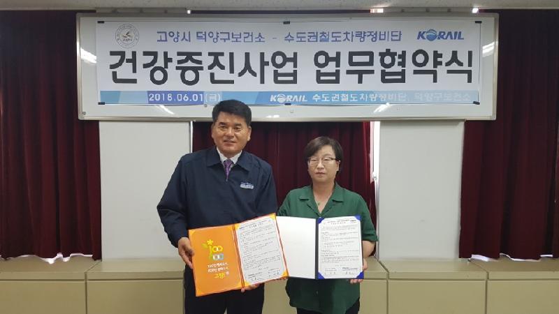 고양시 덕양구보건소는 지난 1일 코레일 수도권철도차량정비단과 건강한 직장 만들기 사업 추진 등을 위한 업무협약을 체결했다.