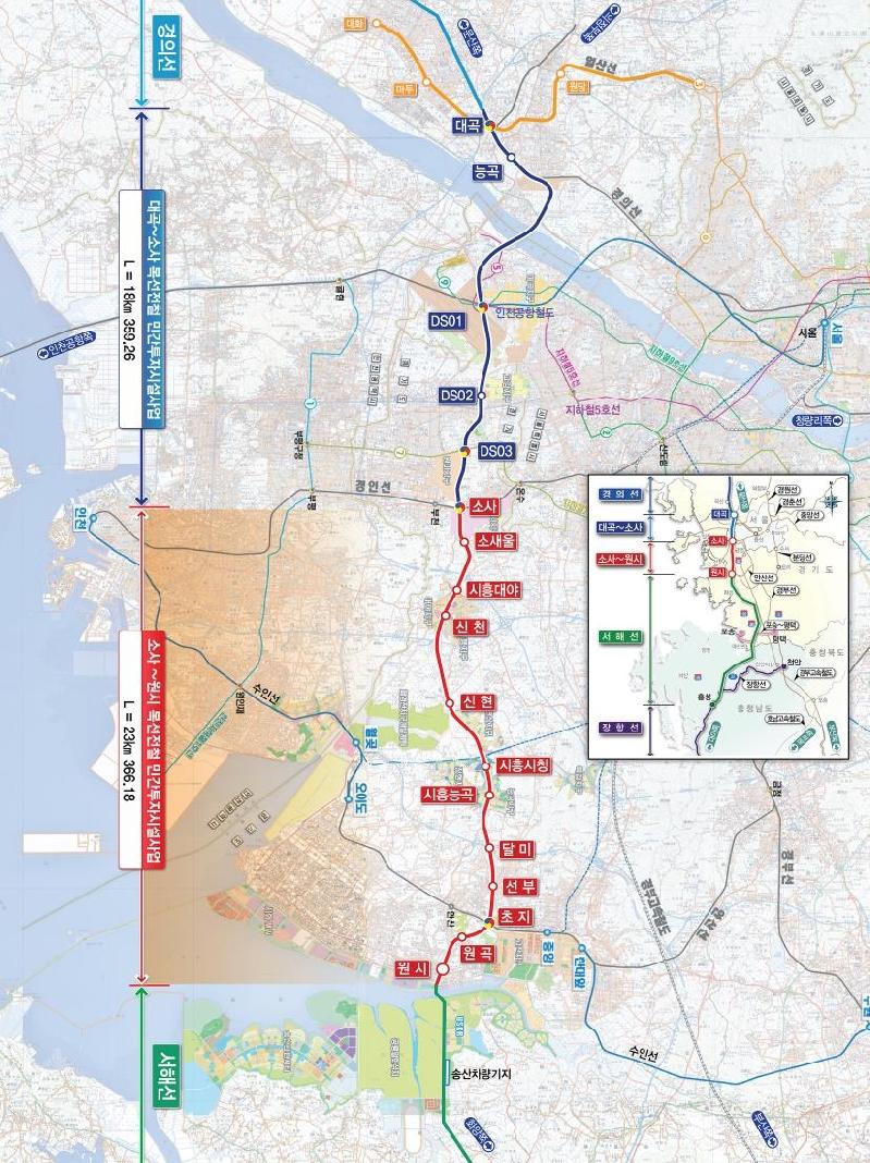 소사역에서 시흥을 거쳐 안산시 원시역까지 총 23.3㎞를 잇는 소사∼원시 복선전철은 총 12개 역으로 연결된다.