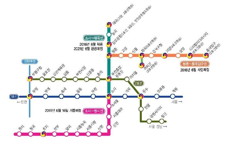 고양(대곡)~부천(소사)~안산(원시)을 이어 격자형 지하철망의 남북 간 중심축을 담당할 소사~대곡 지하철은 오는 2021년 개통예정이다. 특히 서해선 복선전철이 전부 완공되면 부천(소사역)에서 충청남도 홍성, 전라남도 익산까지 직결된다.