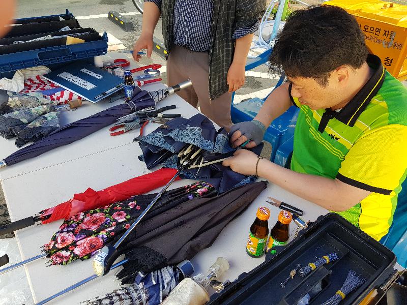 5월 2일 행궁동·세류1동 행정복지센터에서 서비스를 시작한 수원시 ‘찾아가는 우산 수리센터’는 1주일 단위로 다른 동 행정복지센터로 장소를 옮겨가며 두 달 째 운영 중이다.