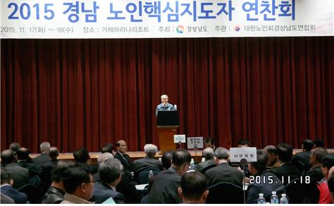 2015년 경남 노인핵심지도자 연찬회가 지난 11월 17~18일, 1박 2일간 거제시 일운면 대명리조트에서 경남도 내 전 시․군 (사)대한노인회 소속 지회장, 부회장, 사무국장, 총무부장 등 170여명이 참석하여 성대히 개최됐다.