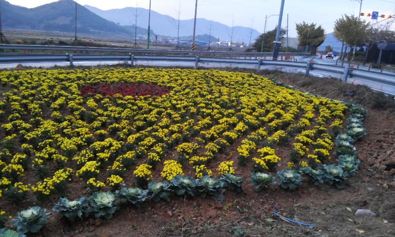 동부면(면장 신삼남)은 산촌-산양 우회도로가 시작되는 도로부지 유휴지 약 300㎡에 국화 꽃단지를 조성하여 지역주민 및 관광객들에게 아름다운 풍경을 제공하고 있다