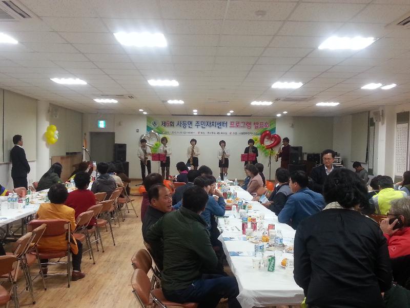 사등면 주민자치위원회(위원장 이용훈)는 지난 20일 사등면사무소 3층 회의실에서 주민 및 관내 기관단체회원 등 100여명이 참석한 가운데 “제6회 사등면 주민자치센터 프로그램 발표회 및 전시회”를 성황리에 개최했다.