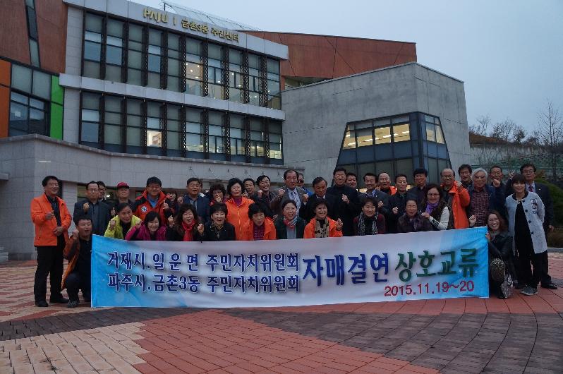일운면 주민자치위원회와 금촌3동 주민자치위원회는 2014년 자매결연 체결 이후 계속적인 우호를 이어나가고 있으며, 앞으로도 상호 축제 방문 및 특산물 교류 등 꾸준한 교류 사업을 통해 상호 긴밀한 관계를 이어나갈 예정이다.