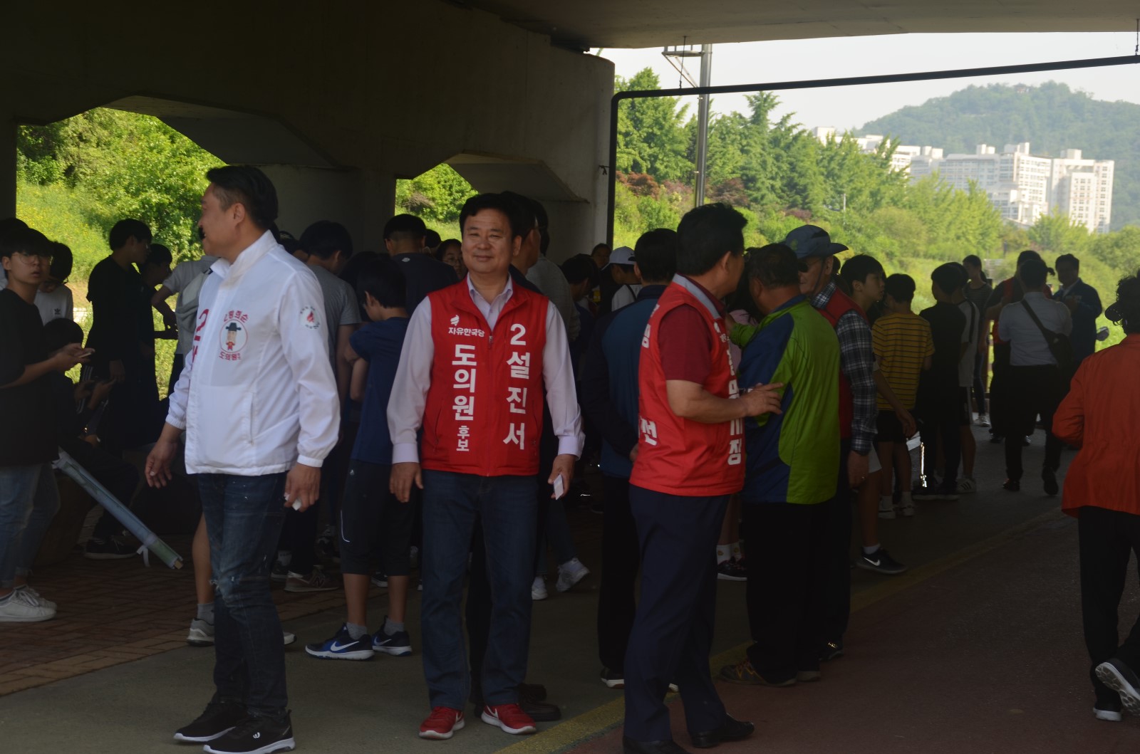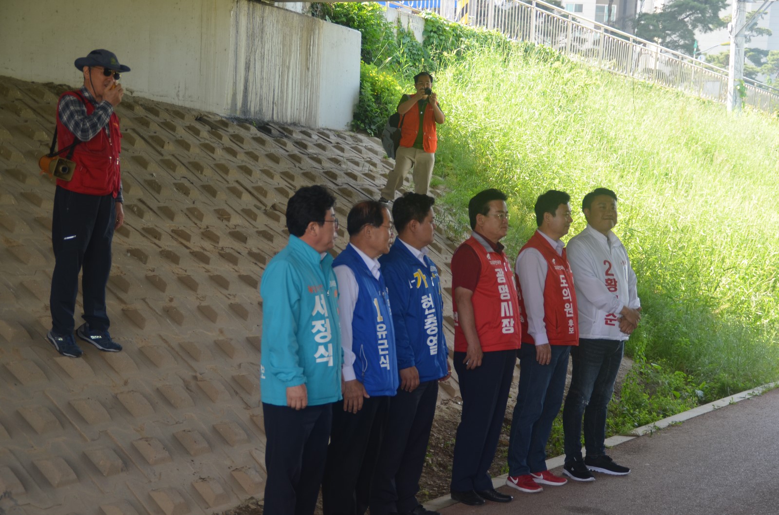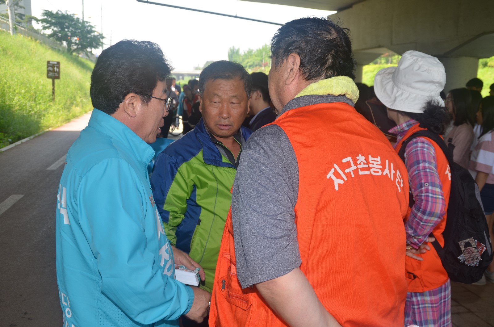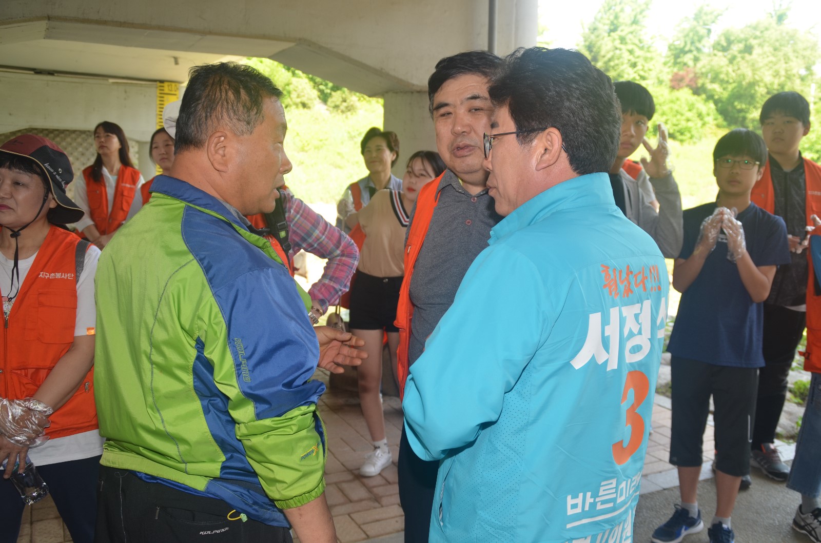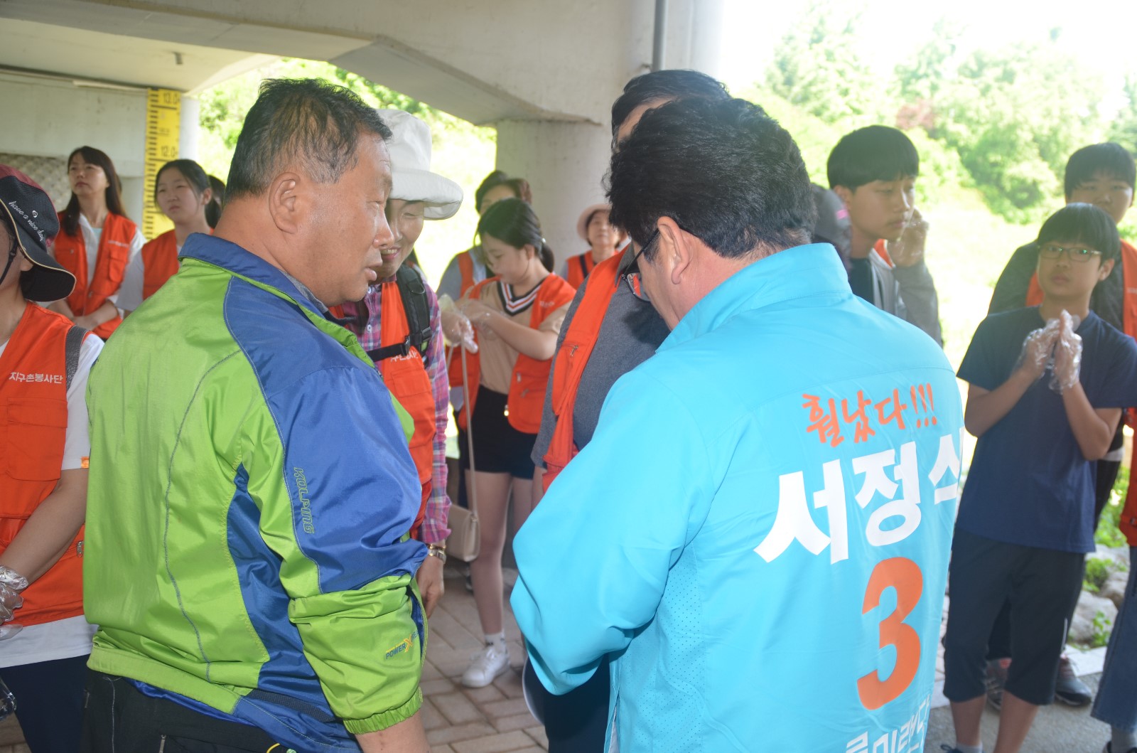 | 26일 오전, 신용현 연합회장이 목감천 환경정화 봉사활동에 참여한 참가자들에게 인사말을 하고 있다. |