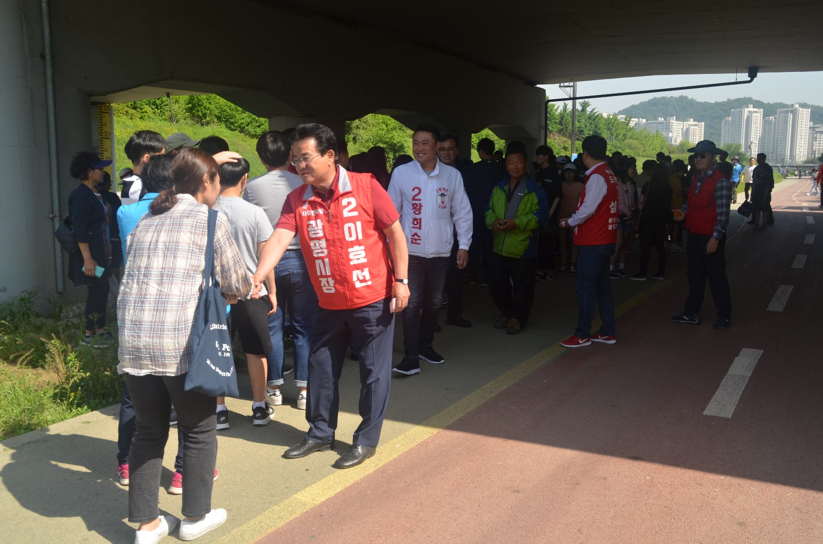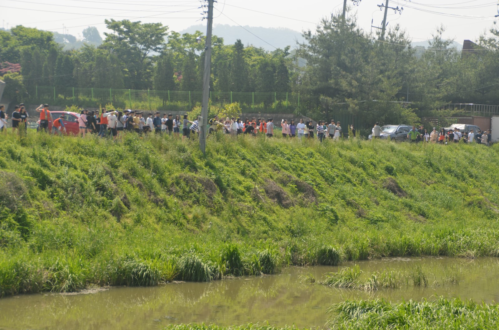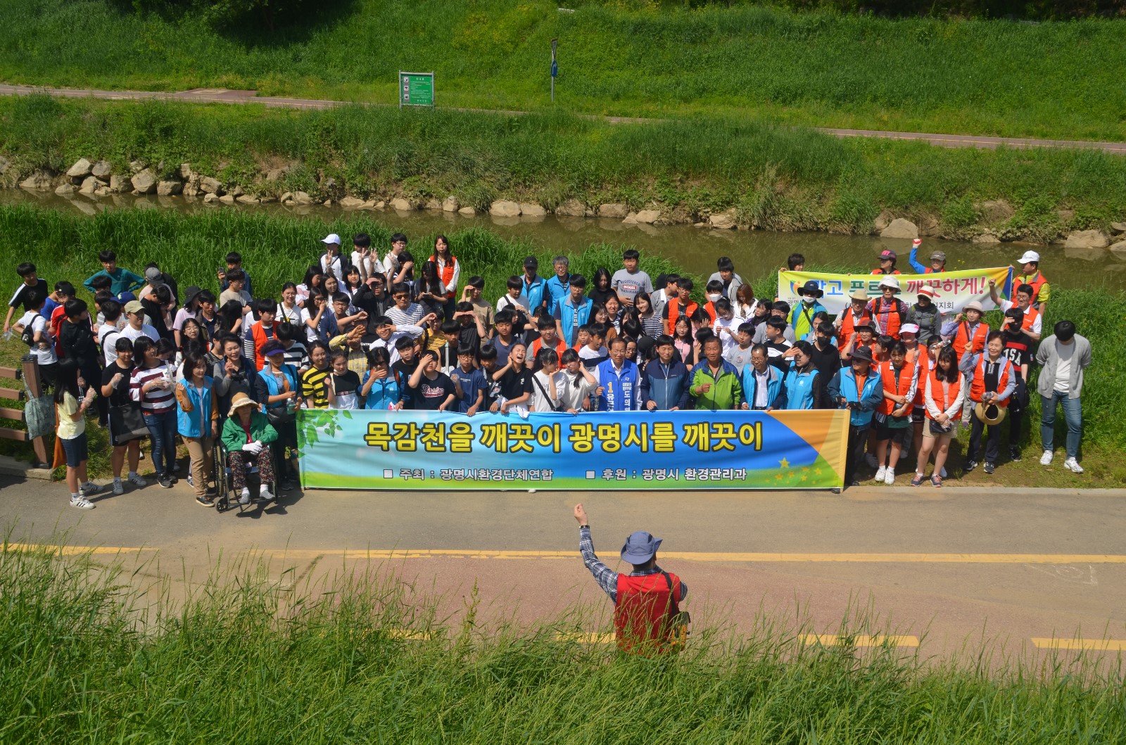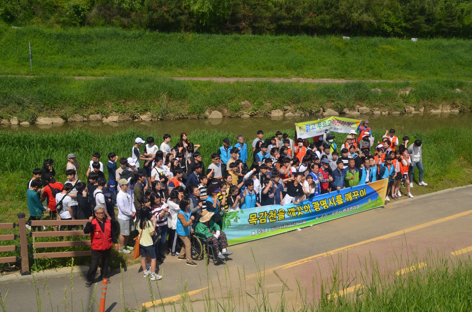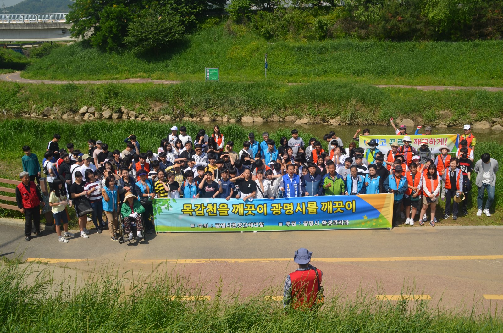 이날 봉사활동에는 환경단체 회원들과 광명시청 환경관리과 직원을 비롯해 광명시 관내 초. 중. 고 학생 등 100여 명이 모여 광명시 일원에 소재한 하천 및 지류에 대해 설명을 듣고 ‘EM배양 흙공’을 목감천에 투척해 하천 정화활동을 했다.