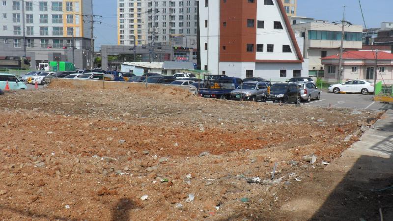 | 주차면 확충을 위한 바닥 고르기 작업이 마무리된 세류1동 공영주차장. |