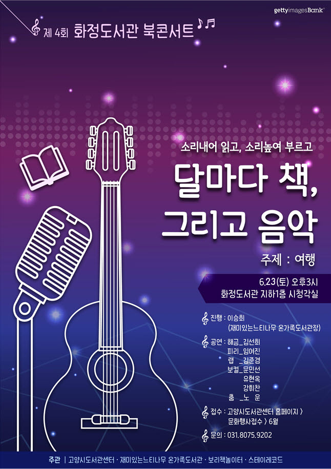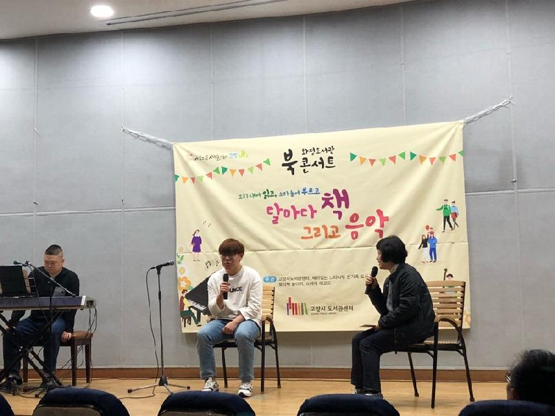 고양시립 화정도서관 관내 ‘재미있는 느티나무 온가족 도서관’과 협력 사업으로 지난 3월부터 ‘달마다 책 그리고 음악’을 주제로 북콘서트를 기획·운영하고 있다.