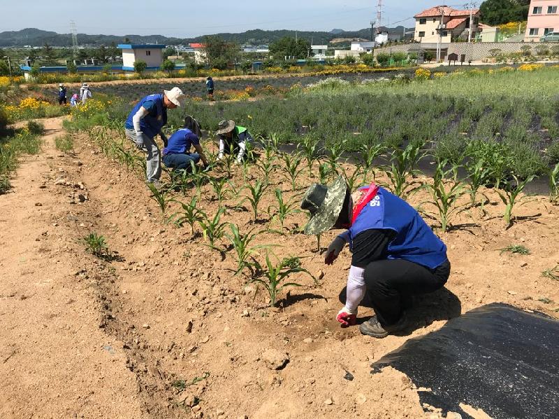 한길학교에서 진행된 봉사활동은 라벤더 밭, 옥수수 밭, 참외 밭 잡초제거 및 영농지도 봉사활동으로 진행되었다.