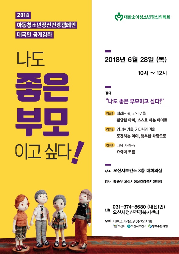 오산시보건소 및 오산시정신건강복지센터는 오는 28일 아동청소년 정신건강 캠페인 공개강좌 ‘나도 좋은 부모이고 싶다!’를 개최한다.