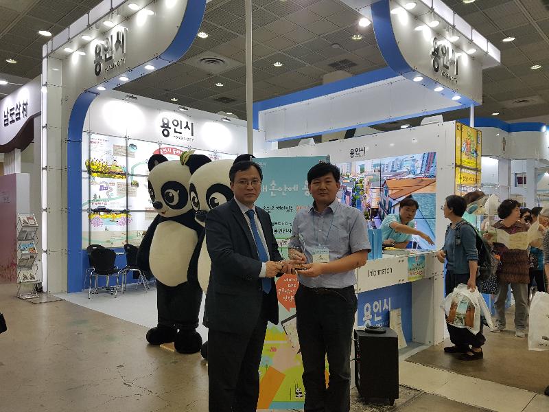 용인시는 36㎡의 홍보관에서 대형멀티비전을 통해 에버랜드, 한국민속촌, 농촌테마파크, 자연휴양림 등 관광명소를 집중 홍보하고 꽁알몬 캐릭터 인형 6종과 관광홍보대사인 판다 인형 등을 다채롭게 전시해 눈길을 끌었다.