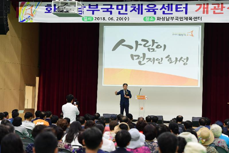 화성시(시장 채인석)가 20일 주민들의 오랜 숙원사업이었던 ‘화성남부국민체육센터’를 완공하고 개관식을 개최했다.