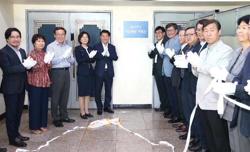 민선7기 광명시정을 이끌어갈 광명시정혁신기획단 현판제막식을 20일 광명시민회관 리허설룸에서 개최했다.