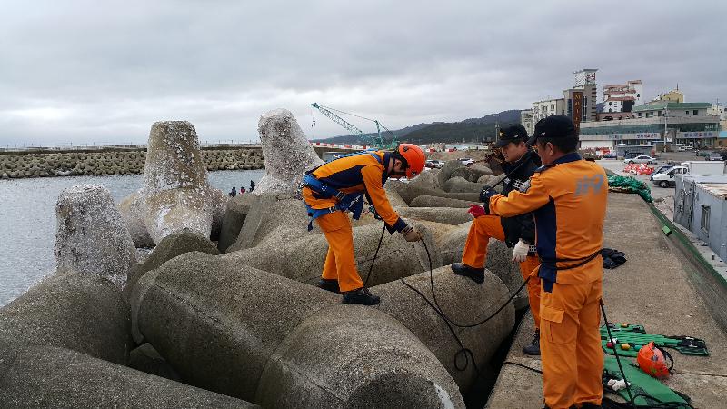 경주소방서(서장 류수열) 감포119안전센터는 24일 감포방파제에서 테트라포트 추락사고 인명구조훈련을 실시했다. 이날 훈련은 인명구조장비인 로프, 카라비나, KED 등을 이용하여 실시하였고 주요 훈련 내용으로는 인명구조장비 사용방법 및 점검상태 확인, 방파제 테트라포트 인명구조시 주의사항 교육, 테트라포트 안전사고 사례 학습 등이다. 정순호 감포119안전센터장은 “테트라포트에서 추락하는 사고가 잇따르고 있다”며 시민들에게 “안전사고가 발생하지 않도록 항상 주의해 달라”며 당부했다.