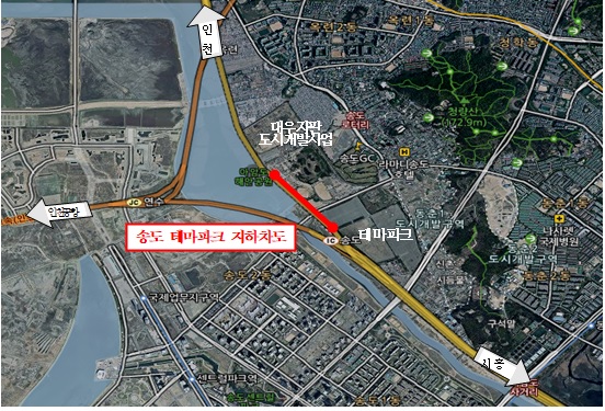 ‘송도 테마파크 지하차도’는 연장 660m, 왕복 4차로로 총사업비 906억 원이 소요되며, 연수구 동춘동 송도3교 교차로 부근에 설치될 예정이다.