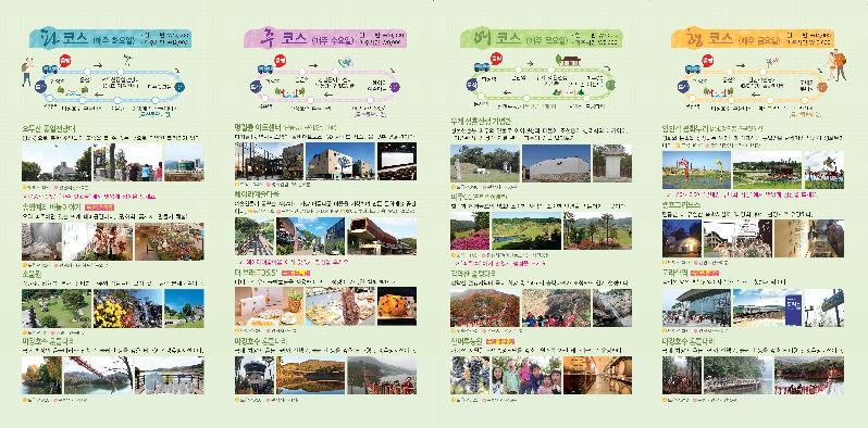 ‘여’코스(매주 목)는 합정역~문산역~우계기념관~파주CC(중식 및 리마인드 웨딩이벤트)~감악산출렁다리~산머루농원(특산품판매장)~문산역~합정역 등을 경유하고 마지막 ‘행’코스(매주 금)는 합정역~운정역~캠프그리브스~군내면 부녀회식당(중식)~도라산역(특산품 판매장)~임진각(DMZ장단콩초콜릿체험)~마장호수흔들다리~운정역~합정역을 만나볼 수 있다.