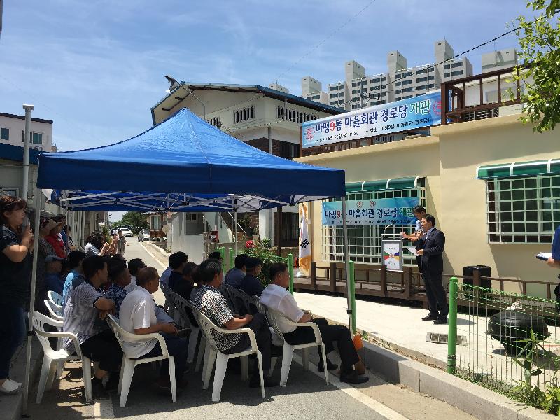 마을회관은 동부로 10-12 147㎡부지에 건축면적 47㎡로 휴게실, 회의실, 경로당을 갖췄다.