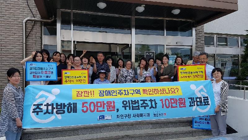 이날 처인구 직원들은 장애인편의시설 기술지원센터와 지체장애인협회, 중앙동 주민센터 관계자들과 시민들에게 제도를 알리는 홍보물을 나눠주고 장애인전용주차구역 준수를 당부했다.