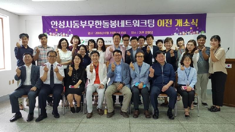안성시 동부권의 지역복지네트워킹 거점역할을 수행하고 있는 동부무한돌봄네트워크팀이 사무실을 기존 죽산면(죽산보건지소 내)에서 안성1동(장기1길 62 구 보훈회관 1층)으로 이전하고 지난 20일 개소식을 가졌다.