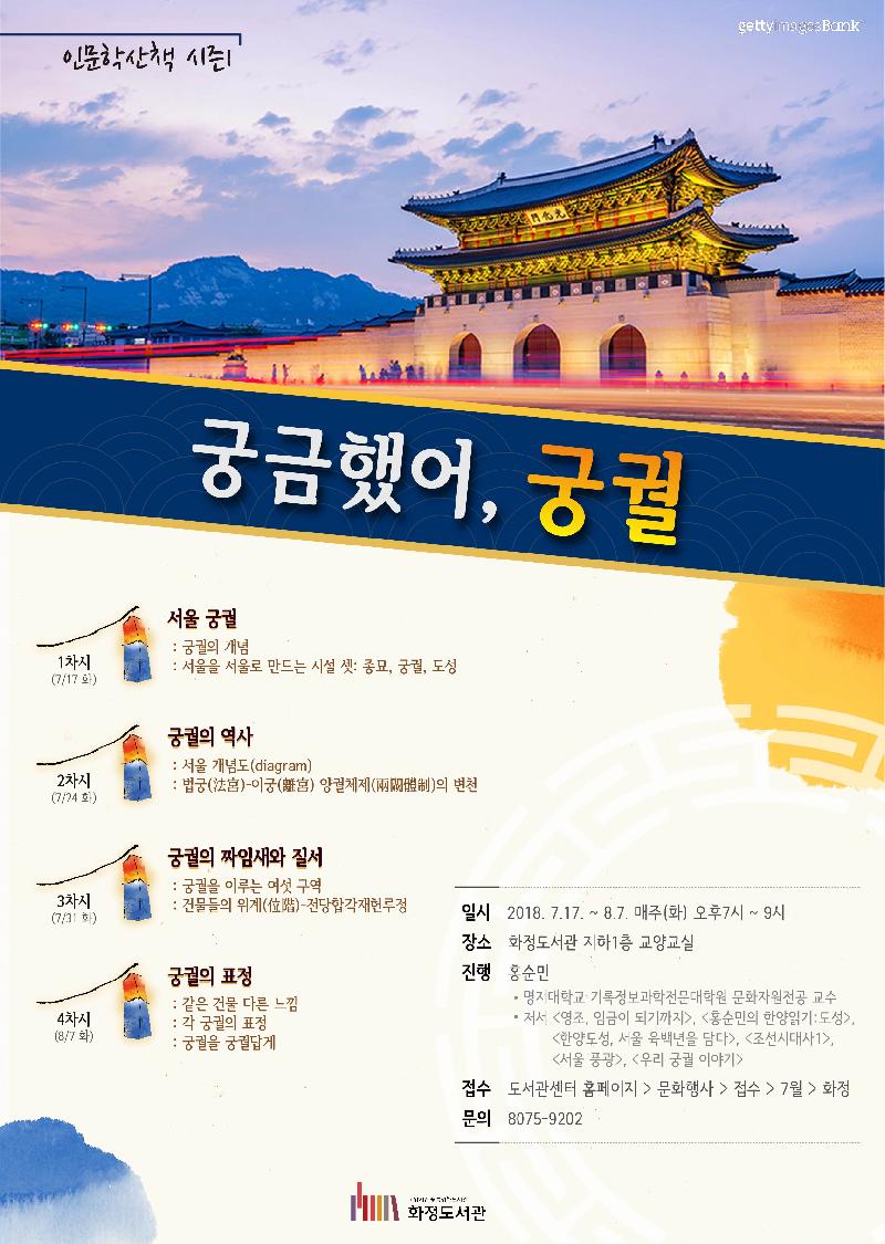 고양시립 화정도서관은 직장인을 위한 야간 인문학 프로그램 인문학 산책 시즌1 ‘궁금했어, 궁궐’을 운영한다. 이 강좌는 오는 7월 17일부터 8월 7일 매주 화요일 오후 7시부터 화정도서관 교양교실에서 진행 될 예정이다.