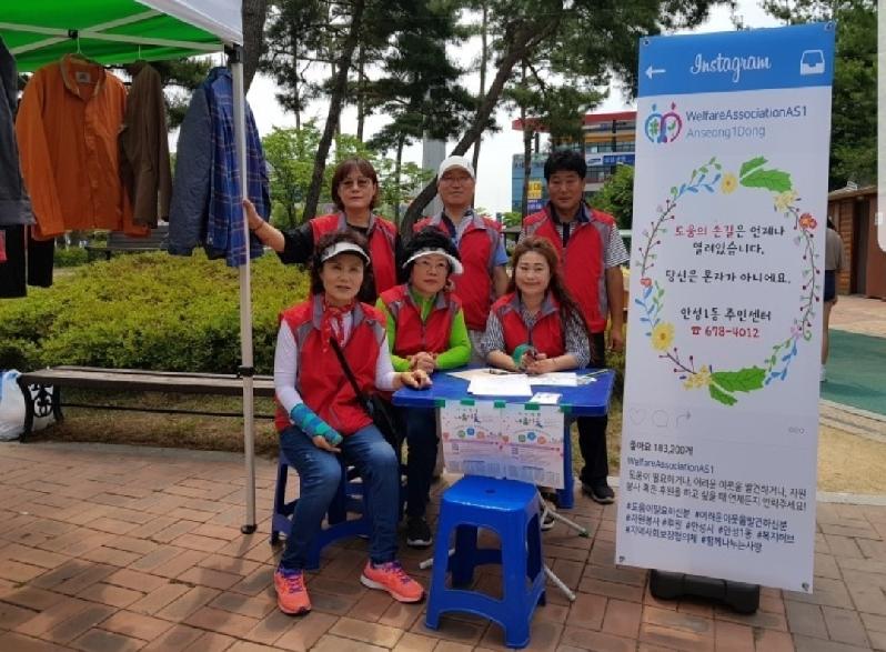 3월부터 현재까지 매달 녹색장터에 참여하여 부스를 운영하며 주변 지인들의 후원 물품을 판매하며 안성1동지역사회보장협의체 기금을 마련하고 있는 위원들은『열린손길』이란 주제 하에 안성1동지역사회보장협의체의 자체 배너 및 현수막을 제작하여 후원자 발굴을 적극적으로 추진하고 있다. 또한, 주변에 어려운 가정이 있는 지 관심을 가져줄 것을 당부하고 복지사각지대 대상자를 발견할 시 안성1동지역사회보장협의체로 연락할 것을 홍보(“어려운 이웃을 찾아주세요.”)하고 있다.