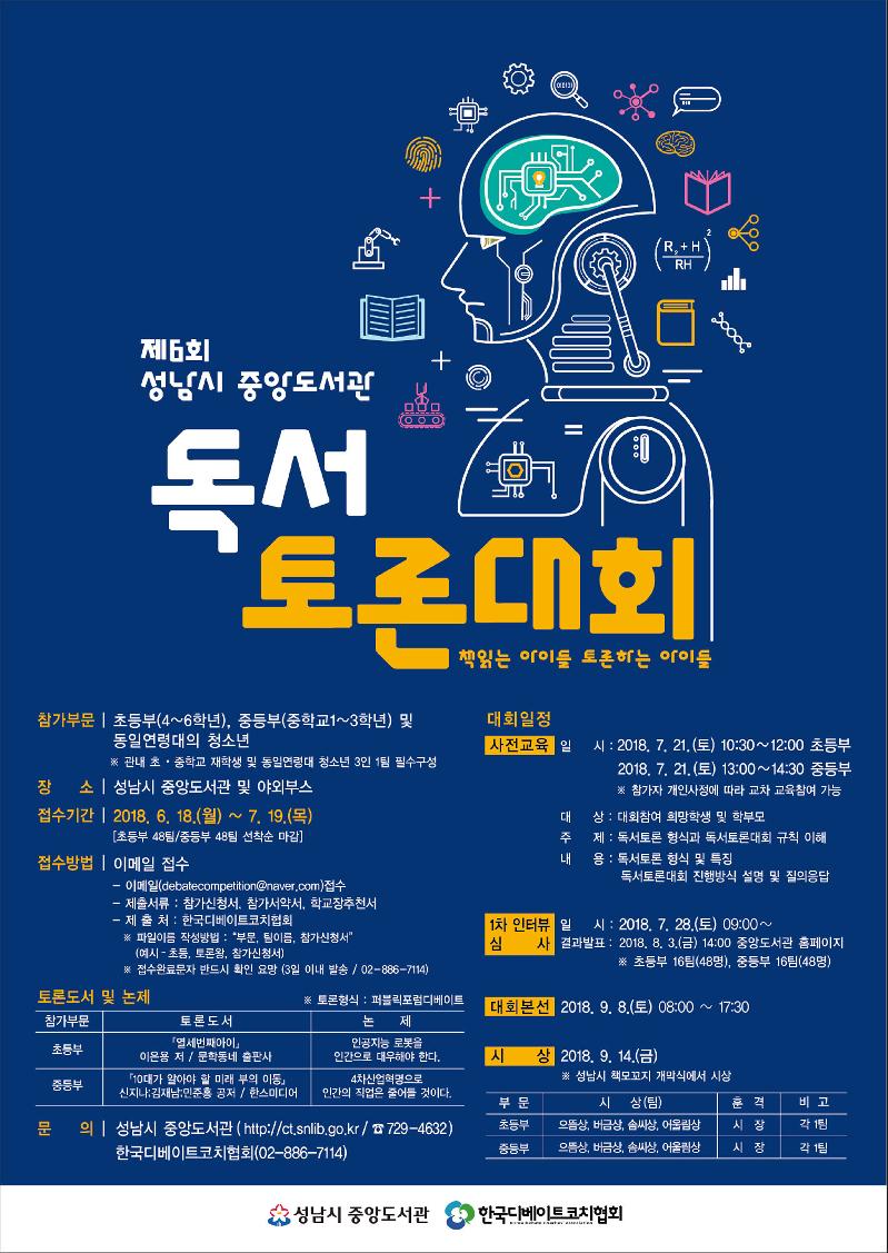 독서토론대회는 오는 9월 8일 분당구 야탑동 중앙도서관에서 열린다.