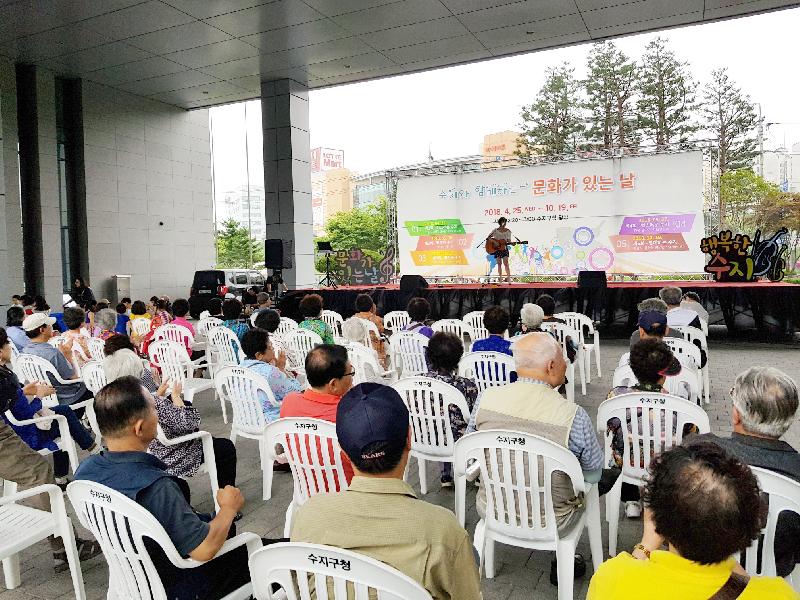 용인시 수지구는 27일 구청광장에서 매달 마지막 주 수요일 점심시간을 이용해 주민들에게 다양한 공연을 선보이는‘문화가 있는 날’행사를 열었다.
