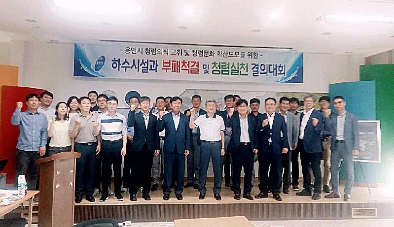 용인시 하수시설과는 27일 죽전동 용인아르피아 홍보관에서 직원과 공사업체 관계자 30여명이 부패척결 의지를 다짐하는 청렴 결의대회를 가졌다.