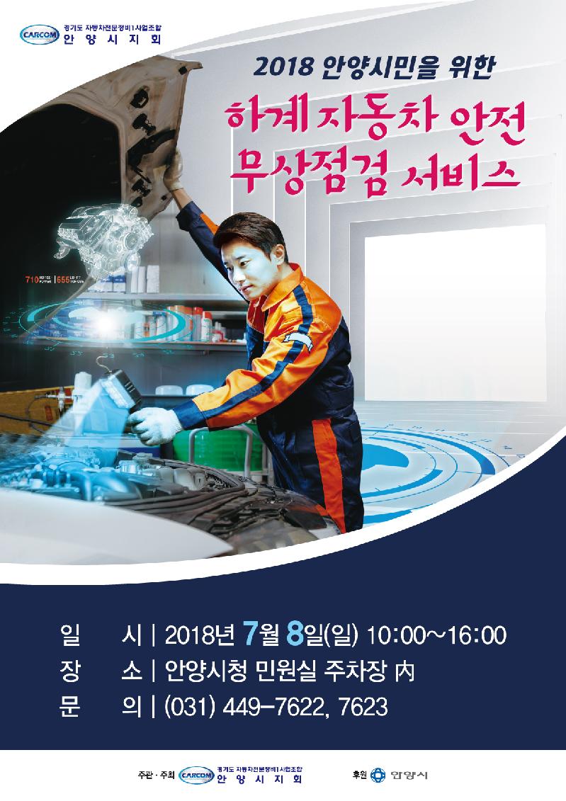 안양시(시장 최대호)는 오는 8일(일) 시청 민원실 주차장에서 자동차 무상안전점검 서비스를 실시한다고 밝혔다.