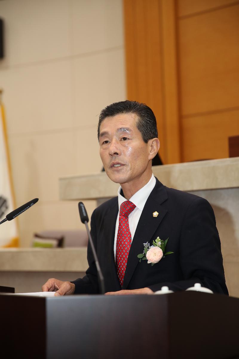 포항시의회는 그동안 집행부와 협력해 시의 발전적 변화를 도모해 왔습니다. 앞으로 우리 포항시의회가 한걸음 더 나아가 시민의 자존심을 살리고 시민이 행복한 포항 건설에 매진해야겠습니다.제가 의장으로서 마땅히 그 앞을 이끌고 뒤를 밀면서 동료 의원 모두가 개개인의 잠재적 역량을 아낌없이 발휘하여 의정활동을 매진할 수 있도록 최선을 다하겠습니다. 우리가 시민의 목소리를 들어주고 감싸주는 민의의 대변자인 것처럼 의장이란 무릇 동료의 마음을 읽고 서로 화합할 수 있도록 윤활제 역할을 하는 것이라 여기며, 동료 의원님들의 넓은 시야와 경륜, 지혜를 모아 지방자치의 새 비전을 열어가겠습니다.아무쪼록 동료 의원 여러분의 아낌없는 조언과 적극적인 협조를 부탁드리며, 적극적인 지지에 다시 한번 깊은 감사의 말씀을 올립니다. 제8대 포항시의회의 발전과 도약을 기대하면서 당선 인사에 갈음합니다.