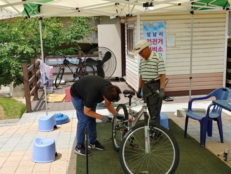 고정식 자전거 정비소는 7월 2일부터 분당구 야탑동 만나교회 뒤 탄천 공터에 마련됐다. 월~토요일 오전 10시부터 오후 5시까지 운영한다.
