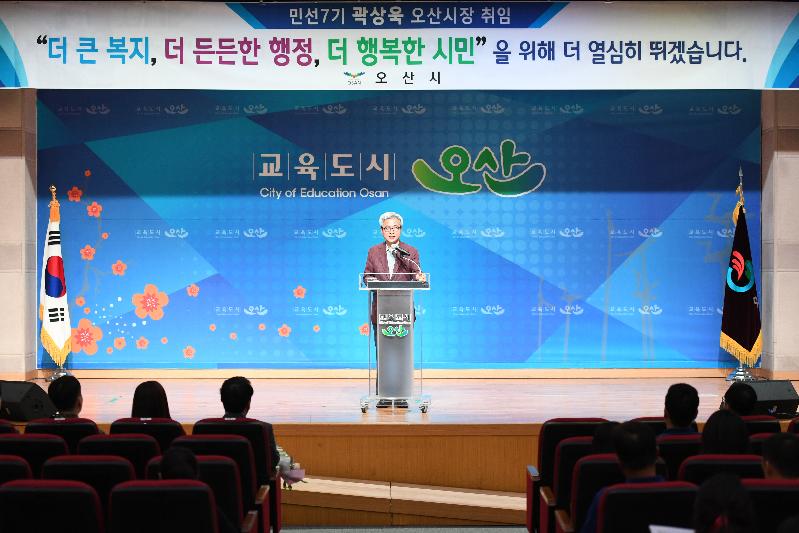 곽상욱 오산시장은 "지난 8년간 직원들의 헌신적인 노력과 시민들의 지원 속에 민선7기 오산 3선 시장의 영광과 더불어 새롭게 시정을 맡았다면서 시민과 직원들에게 감사를 표했으며, 내년 오산시 탄생 30주년을 맞이하여 새로운 백년 오산의 시대를 만들어내야 한다."고 강조하면서 "앞으로의 4년 동안 오산시가 추진할 시정에서 교육의 중요성과 오산시민들의 삶의 질을 높여가는 정책에 대해 강조했다. 또한 산업경제와 일자리 핵심부문 발전과 오산을 살릴 5대 먹거리 프로젝트를 통해 30년 청년오산을 완성하고 백년미래로 도약할 수 있는 발판을 마련하겠다."고 말했다.