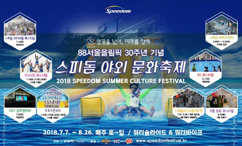 국민체육진흥공단은 광명스피돔을 방문하는 고객들을 위해 스피돔 워터버블 페스티벌, 트로트 콘서트, 치어리딩 페스티벌, OST 음악영화제, 스피돔 트레저 헌터, 여름 동화 페스티벌을 연다고 밝혔다.