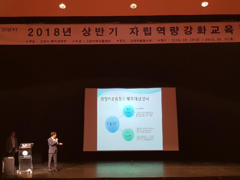 고양시는 지난 6월29일 ~30일 이틀간 고양어울림누리 별모래극장에서 희망키움Ⅱ 및 내일키움통장 가입자 400명을 대상으로 ʻ2018년 상반기 자립역량교육을 실시했다.