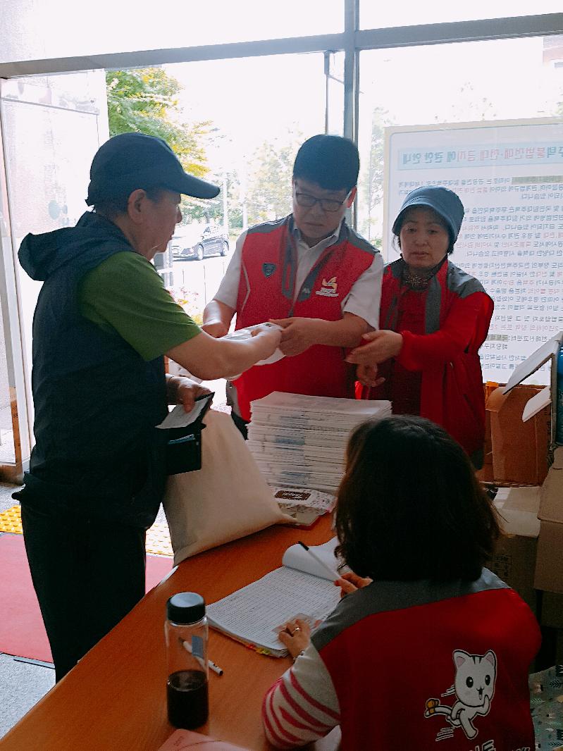 종량제 봉투를 배부받은 한 어르신은 “동 행정복지센터에 방문하기가 쉽지 않은데 이렇게 단지까지 직접 찾아와서 쓰레기봉투와 방역물품을 나눠주니 너무 감사하다”고 말했다.