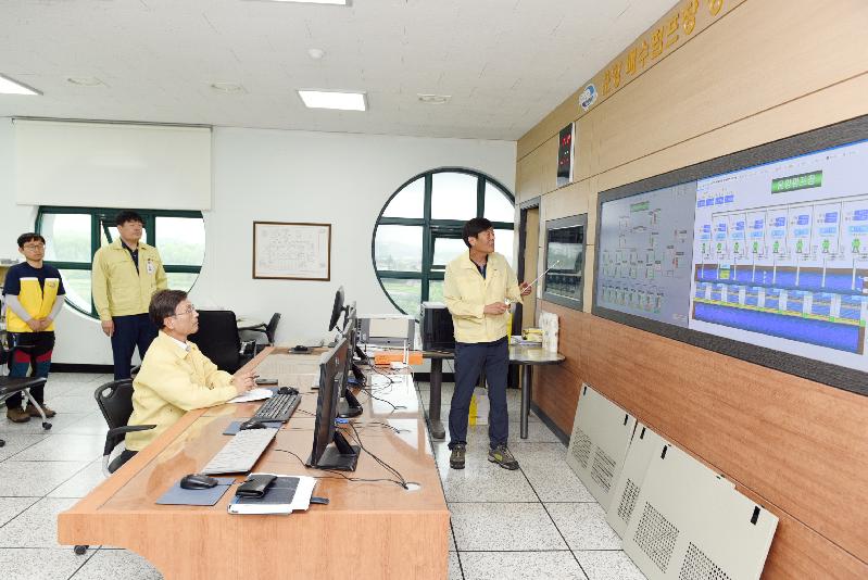 정하영 김포시장이 휴일인 1일 부시장 이하 관계 부서장들과 태풍 피해예방 긴급점검회의를 갖고 운양배수펌프장 등을 돌며 직접 현장을 점검했다.