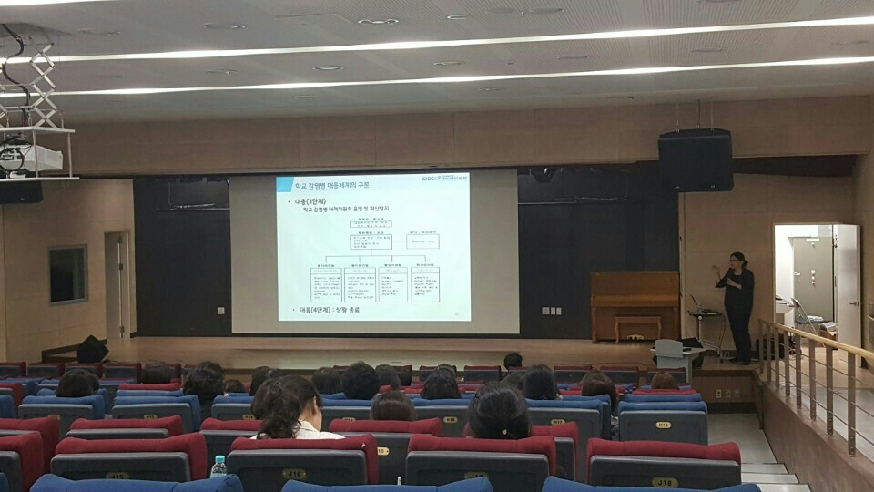 최근 서울소재 한 예술고등학교에서 3명의 홍역 환자가 발생한 사례 등과 수두, 유행성이하선염, 결핵, 인플루엔자, 식중독 등이 학교 내에서 유행할 수 있어, 감염병별 증상, 감염경로, 예방 및 관리, 대응 방법에 대하여 교육을 실시했다.
