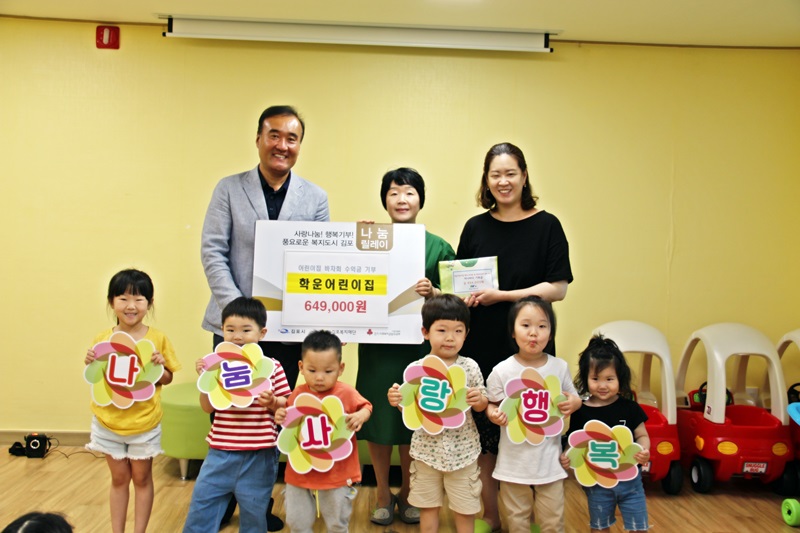 김포시 학운어린이집(원장 안영선)에 재원 중인 아동과 학부모가 김포복지재단에 기부금을 전달해 지역사회에 큰 귀감이 되고 있다.
