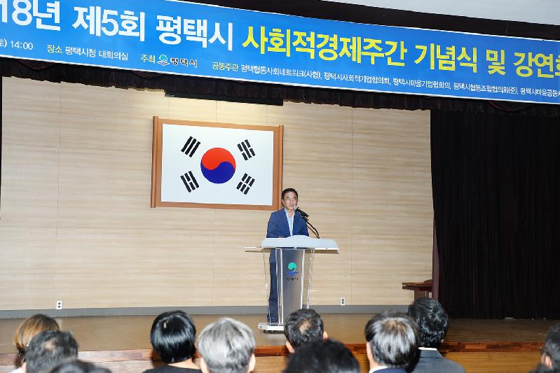 2018년 제5회 평택시 사회적경제 주간 기념식 및 강연회가 지난 7일 시청 대회실에서 200여명의 사회적경제 관계자가 참석한 가운데 개최됐다.