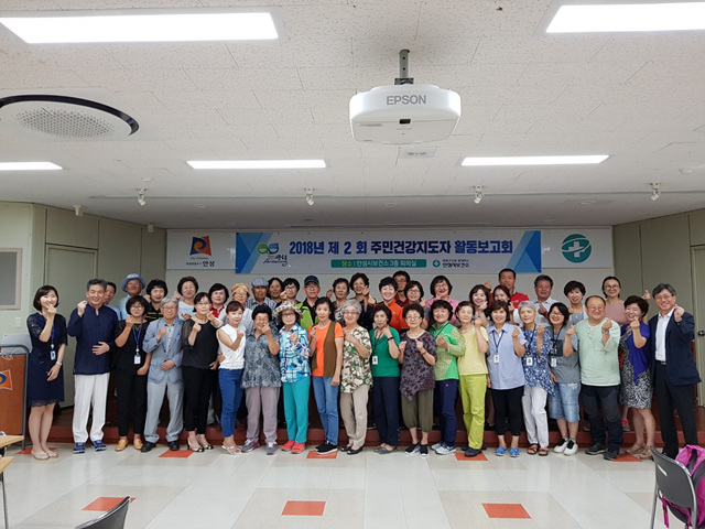 안성시보건소에서는 ‘2018년 주민건강지도자과정’을 수료한 36명의 건강지도자들이 그 간 본인들이 살고 있는 마을을 거점으로 진행되고 있는 건강모임활동을 보고하는 시간을 지난 5일에 가졌다.