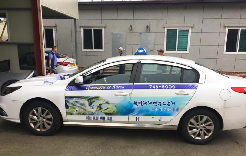 | 경주시가 지역택시에 원해연 유치홍보를 하고있다<경주시 제공> |