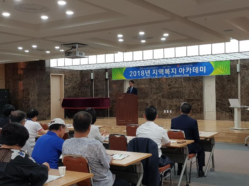 교육은 숭실사이버대학교 정무성 총장이 진행했으며 ‘민관협력에 기초한 지역복지 정책’이란 주제로 강연했다. 정무성 총장은 커뮤니티 케어의 중요성을 강조하며 지역사회의 나눔문화 구축과 민관협력을 기반으로 사회문제를 혁신적으로 해결해야한다고 강조했다. 지역복지 아카데미는 ▲지역복지사업의 방향 및 필요성 ▲지역사회 자원개발의 실제 ▲지역사회보장협의체의 역할과 기능 등을 주제로 7월 6일~8월 3일 매주 금요일마다 5회 운영될 예정이다.