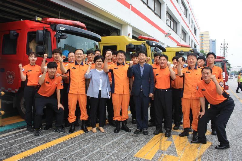 이어 청사를 안내하면서 현장지휘팀 사무실을 방문해 사건사고 발생 시 소방차량에 설치된 실시간영상송출시스템에 대한 설명을 듣고 갈산119안전센터와 구조대를 찾아 소방대원들을 격려했다.