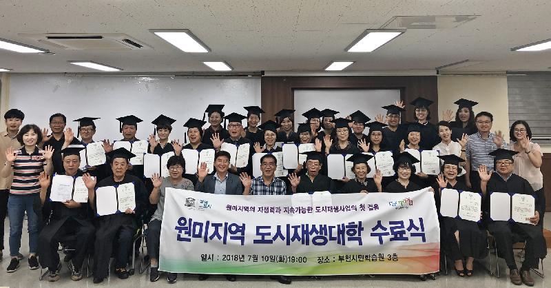 부천 원미 도시재생사업 현장지원센터는 지난 7월 10일 부천시민학습원에서 원미지역 도시재생대학 수료식을 갖고 31명의 수료생을 배출했다.