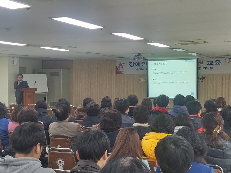 경기도장애인인권센터에서 강사를 초빙해 장애인 인권 침해 및 차별 사례, 장애에 대한 개념과 장애인에 대한 에티켓 등 을 강의해 장애인 업무를 수행하는 공무원과 지역의 소외된 이웃과 소통할 기회가 많은 통 반장 들에게 유익한 시간이 됐다.