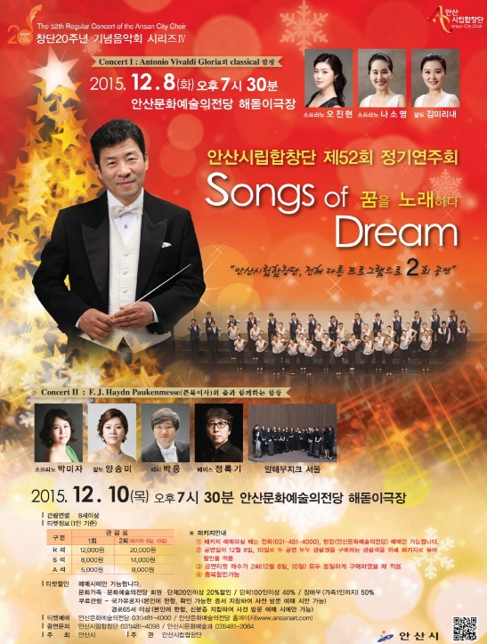 기타 자세한 사항은 안산시립합창단 홈페이지(www.ansanarts.com) 및 문화예술과(☎481-2064) 또는 안산시립합창단(☎481-4098)으로 문의하면 된다.// 신정식 기자 hjsgreen77@hanmail.net