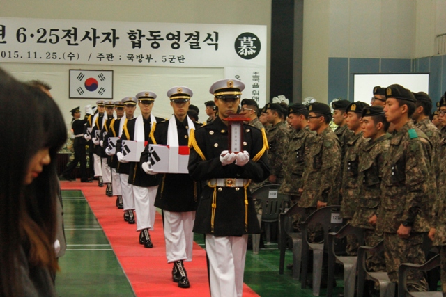 육군 5군단은 지난 11월 25일, 국방부와 공동주관으로 사령부 영내에서 6ㆍ25전사자 유해발굴 합동영결식을 거행했다.