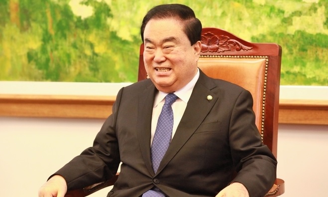 한편 임종석 대통령비서실장은 이날 문 의장을 예방해 주요 국정과제에 대한 국회 차원의 협조를 요청했다. 한병도 정무수석과 함께 문 의장을 찾은 임 비서실장은 김정숙 여사가 문 의장에게 보낸 축하난도 전달했다.