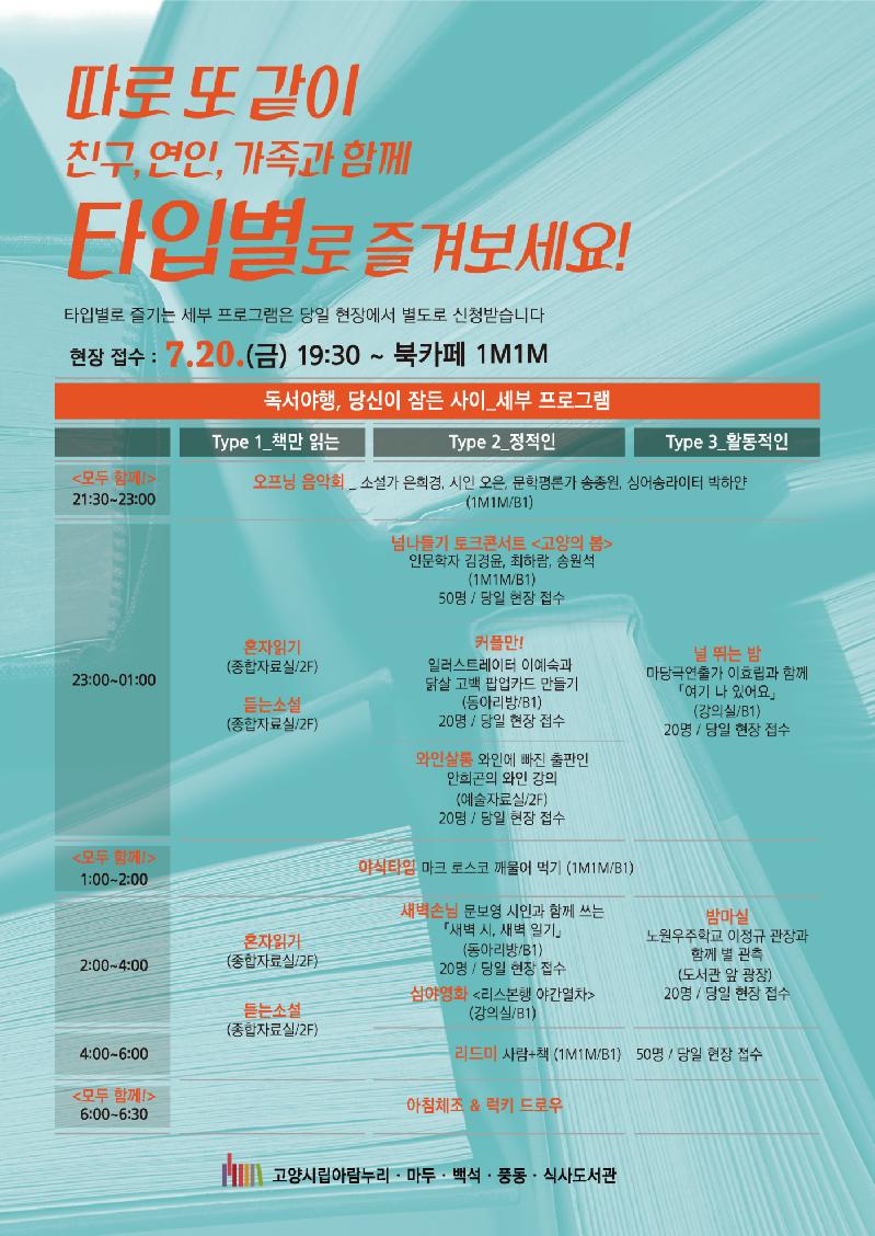 - 7월 20일 밤부터 21일 아침까지 도심 속 ‘성인 북캉스’ 운영