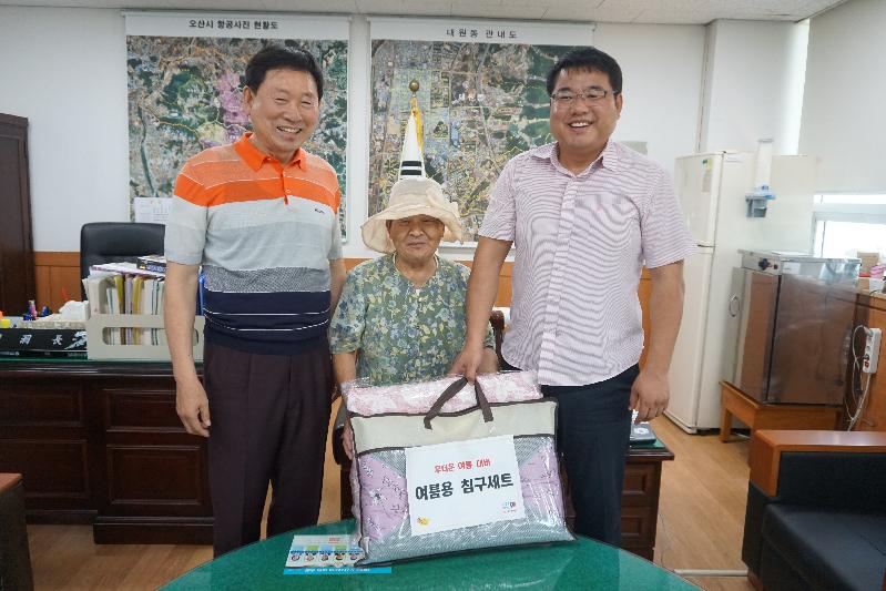 오산시 대원동 행정복지센터(동장 김경만)에서는 지난 17일 하절기 폭염에 대비하여 취약계층 지원 대상으로 폐지 줍는 어르신을 선정하고 “여름용 침구세트”를 전달했다.